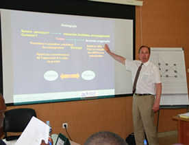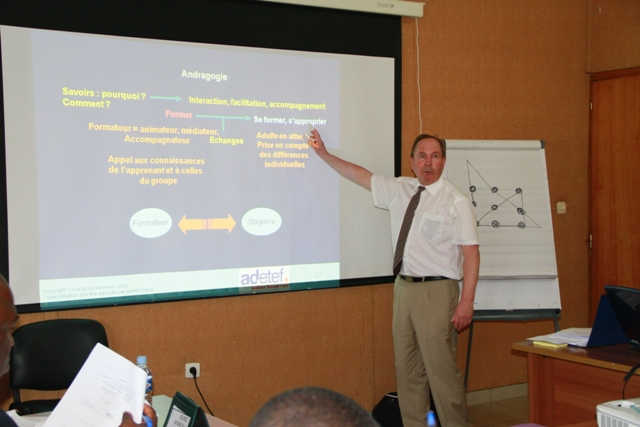 Cette formation de formateurs était axée sur les techniques d’animation d’un groupe et s’est déroulée en deux sessions, animées par M. Christian LEVERT, expert référent formation à ADETEF. La première session a réuni 18 participants du 25 au 26 mars 2013 et la 2nde session 26 participants du 27 au 28 mars 2013.